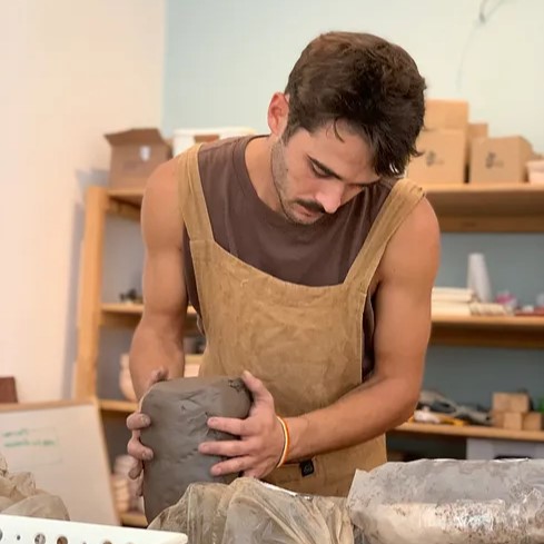 Maria Paz Yachan - Designer industrial, ceramista e fundadora da Paz! Design + Cerâmica, onde administra o ateliê e acompanha de perto o funcionamento das aulas e processos. Com olhar voltado ao design e à expressão individual, orienta os alunes a explorarem criatividade, técnica e a relação com a argila, transformando ideias em peças.